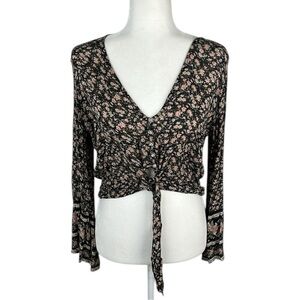 American Eagle Floral Button Front Crop Top Size Medium