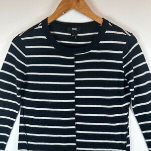 PAIGE Womens XS Merino Wool Blend Black White Striped Knit Sweater Long Sleeve