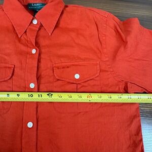 LAUREN RALPH LAUREN Womens Red Orange Linen Short Sleeve Button Up Shirt Size M