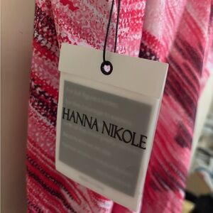 New with tags Hanna Nikole tankini top (bottom not included). Size 12W. Match with a bottom of your choice. Adjustable straps. Removable pads. Loose and flowy. Shell is 85% polyester, 15% elastane. Lining is 95% polyester, 5% elastane. Colors are pink, black and white.