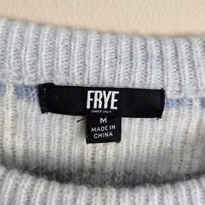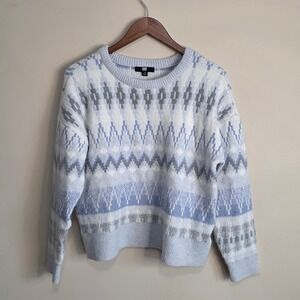 Frye Womens Fair Isle Knit Sweater Light Blue White Grey Geometric Crewneck M