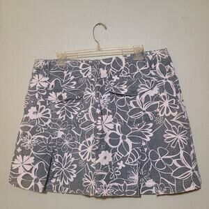 Gloria Vanderbilt Green Floral Print Pleated Cotton Golf Skort Skirt Women's 14