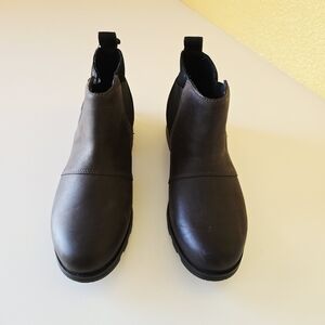 Sorel Emelie Women’s Chelsea Lug Sole blackened brown Waterproof Boots Size 8