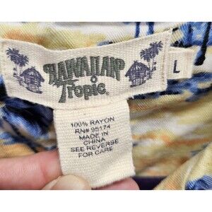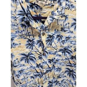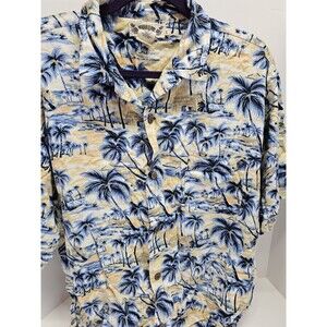 Hawaiian Tropic Brand Button Up All Over Graphic Print Aloha Shirt SizeL. Please see photos for details and condition before purchase.