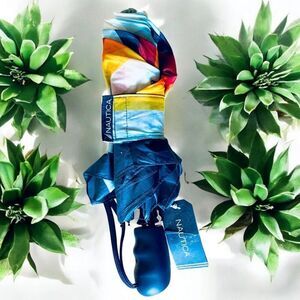 NWT Gorgeous Nautica Navy, red orange yellow white & blue 42” Auto Open Umbrella