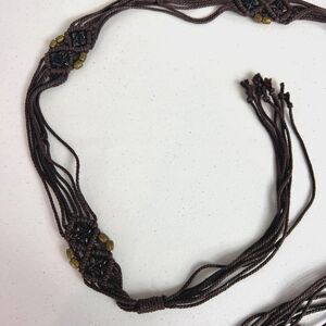 Brown Woven Boho Tie Belt Flower Beads Women's Size S / M (See Measurements)