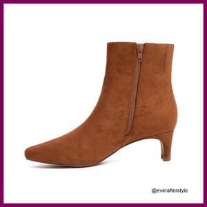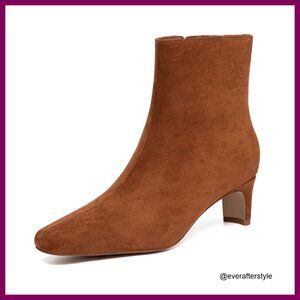 Suede Ankle Boots Low Heel Square Toe Side Zipper Comfortable Dress Boots