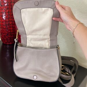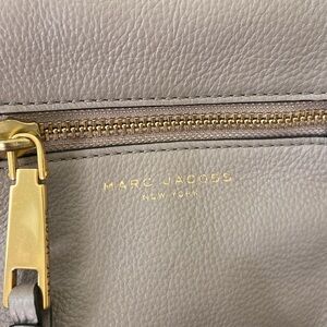 Crossbody bag, Marc Jacobs bag, leather crossbody, pebbled leather bag, grey handbag, minimalist bag, everyday purse, designer crossbody, neutral handbag, classic purse, adjustable strap bag, casual chic, modern minimalist, designer handbag, streetwear, contemporary, capsule wardrobe