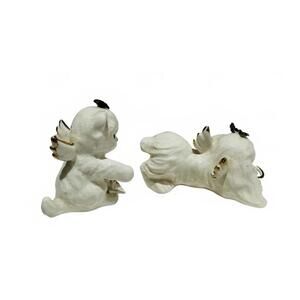 Napco Vintage Ceramic Christmas Dog & Cat Angel Figurines with Gold Accents