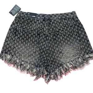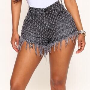New Fashion Nova 5 Dark Black Gray Wash Distressed Denim Jean Shorts Fringe`