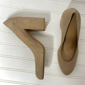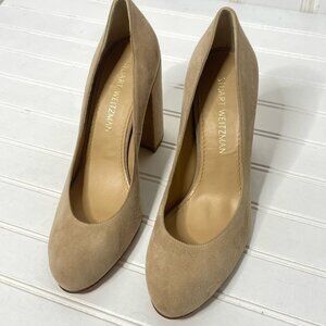 Stuart Weitzman Tan Suede Round Toe Pumps