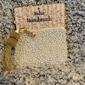 Stylish black beaded star keychain pouch with silver accents. Perfect for adding flair to your accessories.