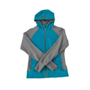 LULULEMON OASIS SCUBA HOODIE JACKET BLUE AND GRAY COLOR SIZE 8 PTP 18”