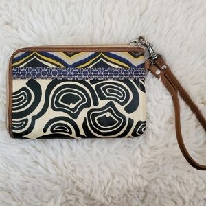 Fossil Womens Wallet Artsy Leather Zip Up Card Wallet Abstract