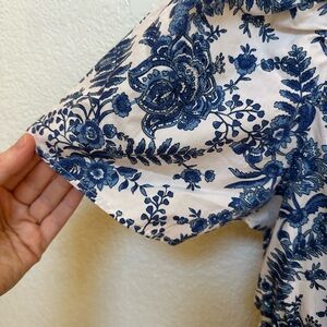 Anthro blue and white floral Somerset top. XS and new with tags. It’s very pretty on but just waaaaay too small for me. I think I bought it for like $75 but open to offers.