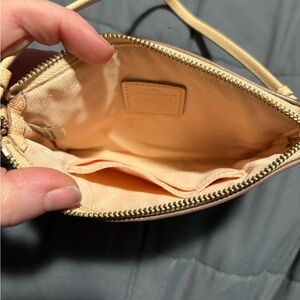 Chic Coach wristlet in a soft pink tone. Ideal for casual outings.