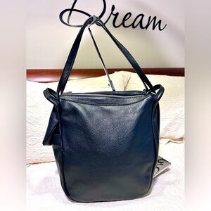 EUC CARLA FERRERI Black Leather Shoulder Bag/Backpack Convertible Bag.