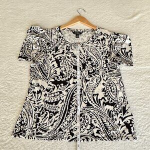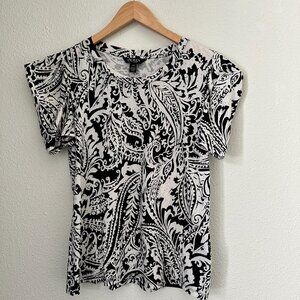 Ralph Lauren Black & White Paisley Flutter Sleeve Top S: L - Timeless Feminine