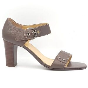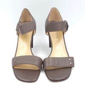 Worthington Size 9.5M Ankle Strap Open Toe Heeled Shoe Leather Brown