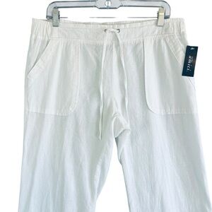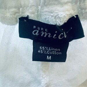 PURE AMICI Linen Cotton Wide Leg Pants Pockets White Drawstring Size Medium NWT
