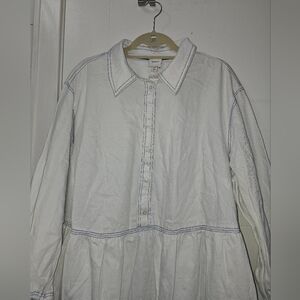 Maeve Denim Tiered Mini ShirtDress In White Sz 2X