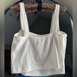 Anthropologie White Ribbed Crop Top with Bow Straps