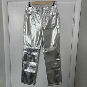 NWT Gap Silver Shiny Metallic Cheeky Straight High Rise Pants Size 4