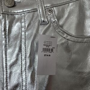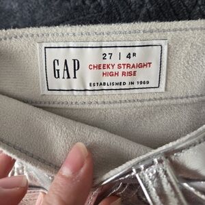 new with tags. gap size 4 regular pants. shiny silver metallic cheeky straight high rise