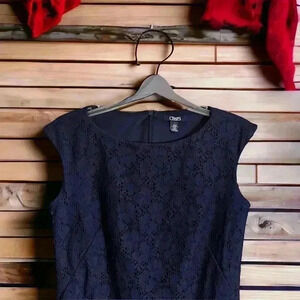 Radiate elegance in this exquisite Chaps dress, originally valued at $110 (though the replacement retail tag states $100). This dress is designed to enhance your femininity, offering a figure-flattering look with its lace design and sheath cut.