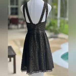 Victoria's Secret Moda International Black Gold Lace Mini Dress Size 8 New