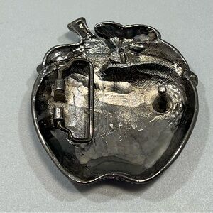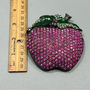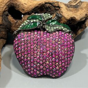 Vintage Rare Red Iridescent Rhinestone Prong-Set Apple Belt Buckle With Stem Leaf. Preowned item in good condition. Please see my images for details.