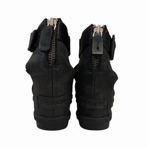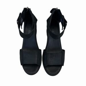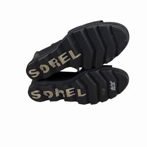 Sorel Joanie II Black Leather Ankle Strap Wedge Sandal Size 9