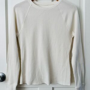 Everlane Waffle Crew Long Sleeve Tee 100% Organic Cotton Off-White Bone Size S