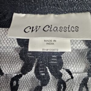 CW Classics Black Sheer Lace Button Down Blouse Large Collared Romantic Goth Top
