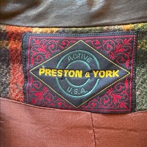 Vintage Preston & York sz L wool plaid coat with leather trim