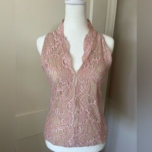 VTG Pink nude Lace vneck Sleeveless Top womens L coquette girl, y2k, 90s, GIRLY