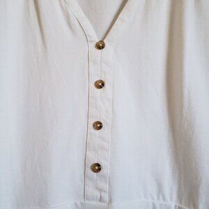Modcloth Organic Cotton Sleeveless V-Neck Button Lace Detail Top Blouse White Size Women's 2X