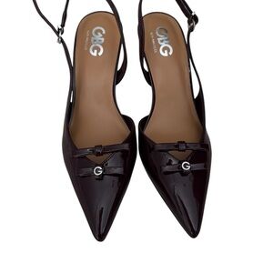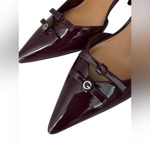 New! GBG Los Angeles Burgundy Patent Slingback Bow Buckle Pointed Toe 7.5M