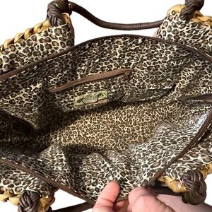 Great used condition - Sun N Sand rattan straw summer basquet shoulder beach market carryall tote bag. Zip closure and 1 interior zip pocket leopard interior