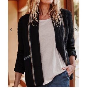This elegant black jacket is perfect for any occasion. Its sleek design offers a sophisticated look, making it a versatile addition to your wardrobe.
