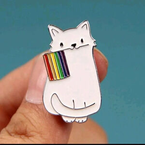 Cute black white two piece LGBT flag enamel pin brooch charm purse bag decor sat