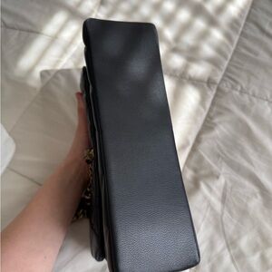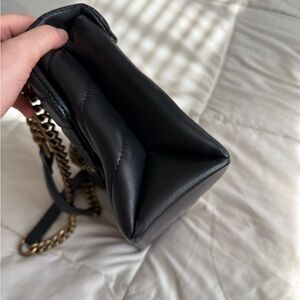 Elegant black quilted leather shoulder bag with gold chain accents. Perfect for any occasion.