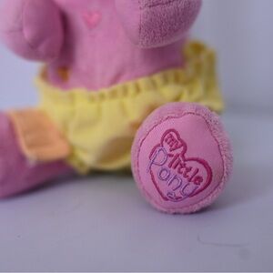 Adorable My Little Pony toy from 2007 from their “So Soft Newborn” line. She is Rarity the Unicorn. It used to talk but button no longer works so she is just a collector piece or a plush now.