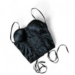 Y2K New Mix Classic Black Satin Corset Top Bustier Dark Academia LC06 S Goth