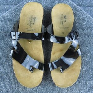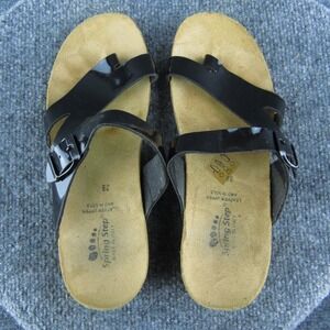 Spring Step Women Flip Flop Sandal Shoes Black Patent Leather Size 38 Medium