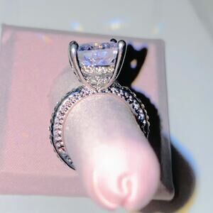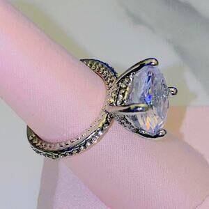 New Sz 7 Cubic Zirconia Solitaire Ring Clear White Silver Engagement Cocktail