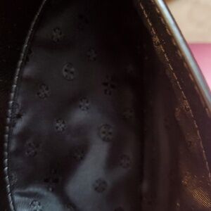 tory burch black leather clutch with gold plated accents like new condition