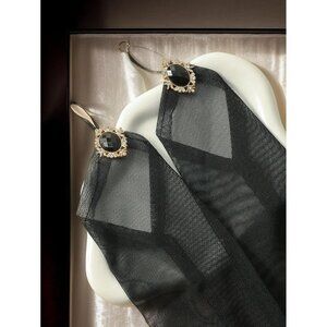 Women's Black Gemstone Fingerless White Tulle Mesh Long Tulle Long Party Costume
