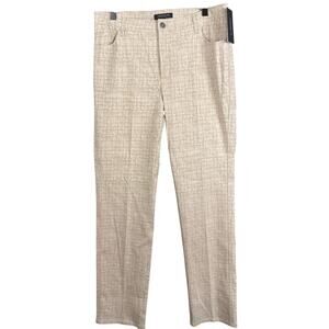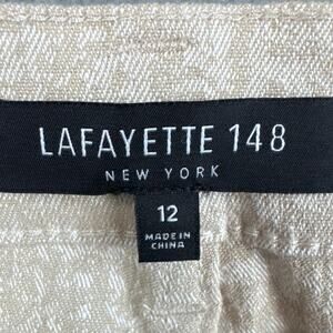 Lafayette 148 Medallion Pants in a linen blend cream fabric with subtle metallic detail. Size 12, NWT. Designer piece offering quiet luxury and sophisticated style.