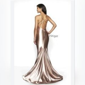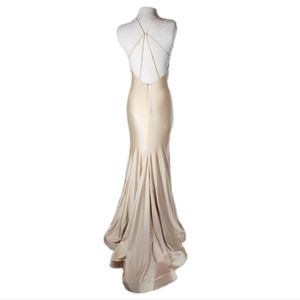 iNtrigue by Blush Strappy Back Satin Jersey Elegant Formal Gown Color Champagne Size 0 Zero
